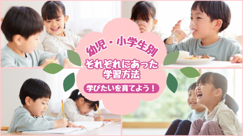 年齢別!幼児・小学生それぞれに合った学習法 |楽しく身につくコツ 「うちの子、まだ早いかな?」「どうやって勉強を始めたらいい?」そんな悩みを持つママに向けて、我が家で実践した幼児と小学生それぞれに合った学習法を分かりやす